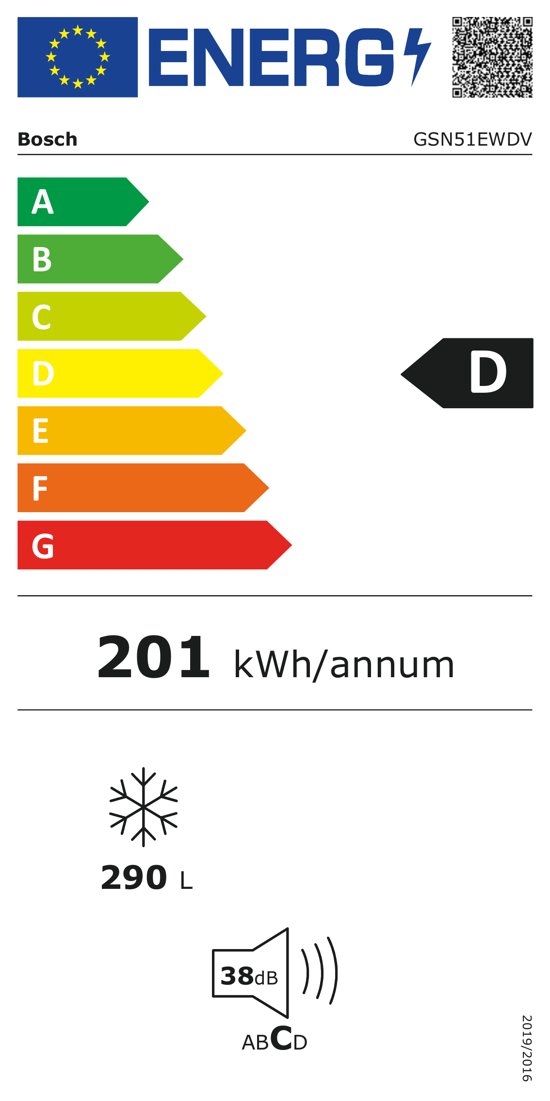 Das Energielabel ist ein wichtiger Indikator für die Energieeffizienz eines Gefrierschranks, aber auch die Geräuschemisionen eines Gerätes können hier abgelesen werden.